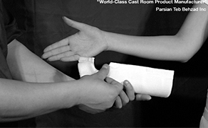 - به مدت 2 یا 3 دقیقه آتل ایجاد شده بر روی مکان آسیب دیده را با دست نگه داشته تا فرم نهایی داده شده را به خود بگیرد.