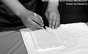 - طرح محل برش و مکان خروج انگشتان را بر روی آتل مشخص کرده و سپس آنرا برش می دهیم.توجه نمایید در این حالت یک یا دو انگشت در داخل آتل قرار می گیرد