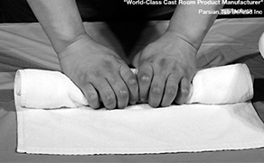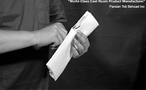 - باند را بر روی حوله ای بزرگتر قرار داده و به آرامی آنرا لوله نموده تا آخرین مقدار آب اضافی نیز گرفته شود.