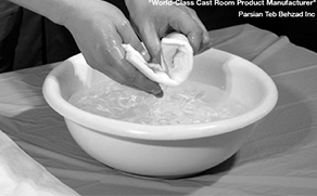 - در ادامه باند را در آب ولرم ( 20-30 سانتیگراد ) برای 1 تا 2 ثانیه خیس نمایید.
