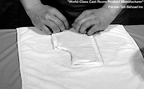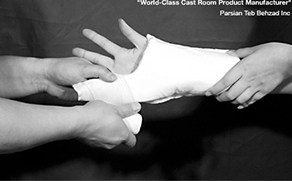 - به مدت 2 یا 3 دقیقه آتل ایجاد شده بر روی مکان آسیب دیده را با دست نگه داشته تا فرم نهایی داده شده را به خود بگیرد.