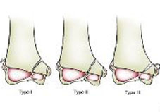 In 1965, Kilfoyle combined his own experience with 5 colleagues to collect a total of 11 examples of medial condyle fracture and separated them into 3 types of injury, as depicted in the image below.[16] Type I involves a greenstick fracture or crush of the medial condyle metaphysis down to but not including the physis. He also stated that these may actually be incomplete supracondyle or intracondyle fractures. Type 2 involves a fracture through the physeal plate and epiphysis without displacement or rotation. Type 3 is similar to type 2 but with moderate-to-severe displacement and rotation of the fracture fragment.